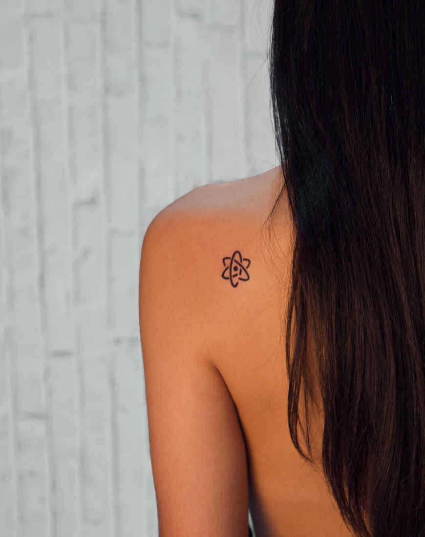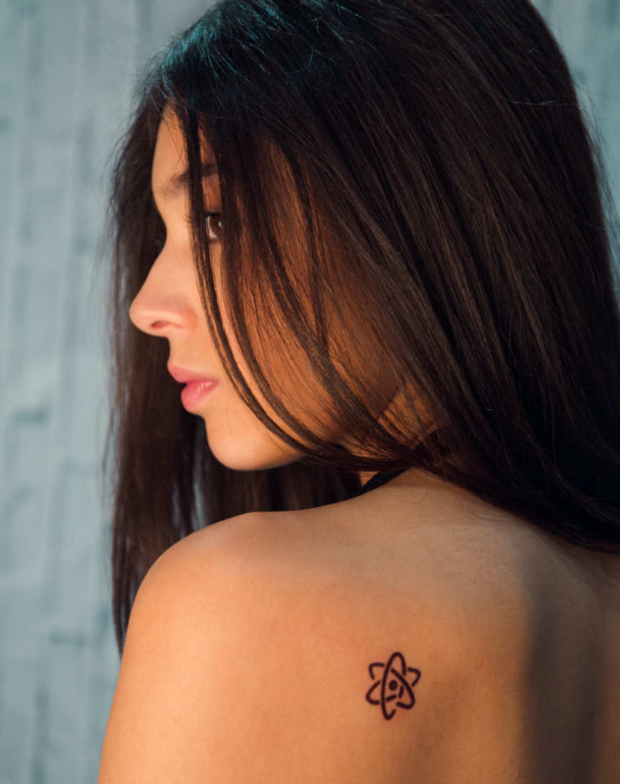 Este átomo minimalista puede parecer algo friki, pero representa el origen de toda forma de vida conocida. ¡Lleva sus curvas este verano contigo!