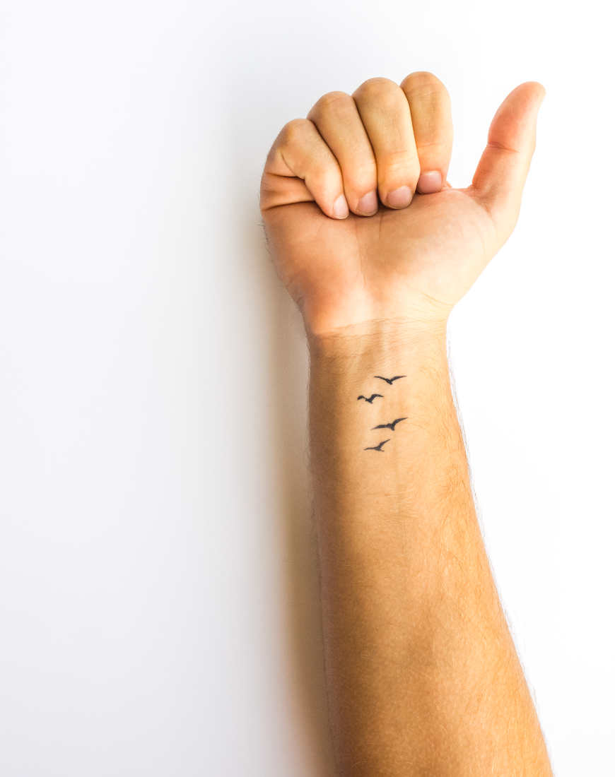 Bandada de pájaros. Siente la libertad, vuela sin límites, atraviesa poblaciones y continentes. ¿No hemos soñado todos alguna vez con volar? Somos libres de ser lo que somos y de ir donde queramos. Este tatuaje de gaviotas representa la naturaleza y la libertad y es uno de los tatus prefedidos de nuestra web!